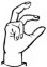 На ћирилици написано АНА БИЗУМИЋ састоји се из 10 слова [?]. Исписано ћириличном једноручном азбуком за глувонеме:
